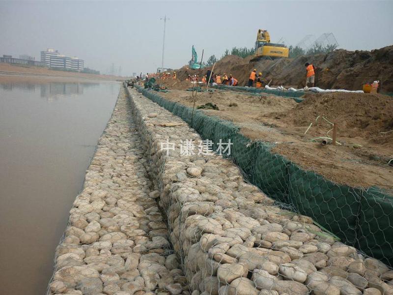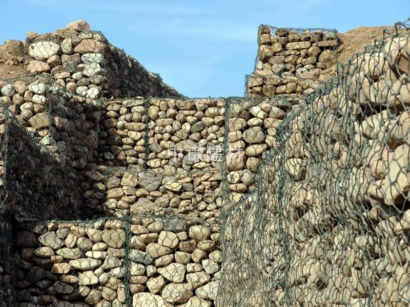 (3)鍍鋅鋼絲包塑:優(yōu)質(zhì)低碳鋼絲,在鋼絲的表面包一層PVC或PE保護(hù)層,再編織成各種規(guī)格的石籠網(wǎng)。這層保護(hù)層將會大大增加在高污染環(huán)境中的保護(hù),并且通過不同顏色的選擇,使其能和周圍環(huán)境融合。